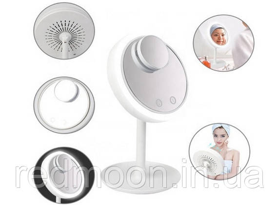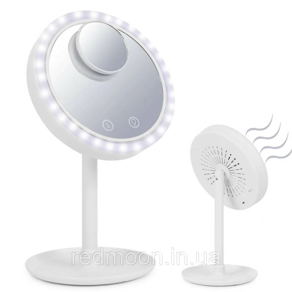 Настільне дзеркало з підсвіткою та вентилятором Beauty Breeze Mirror / Дзеркало для макіяжу зі збільшувачем