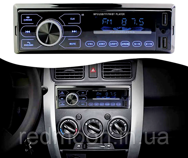 - Магнітола 1 din має яскраве світлодіодне підсвічування;