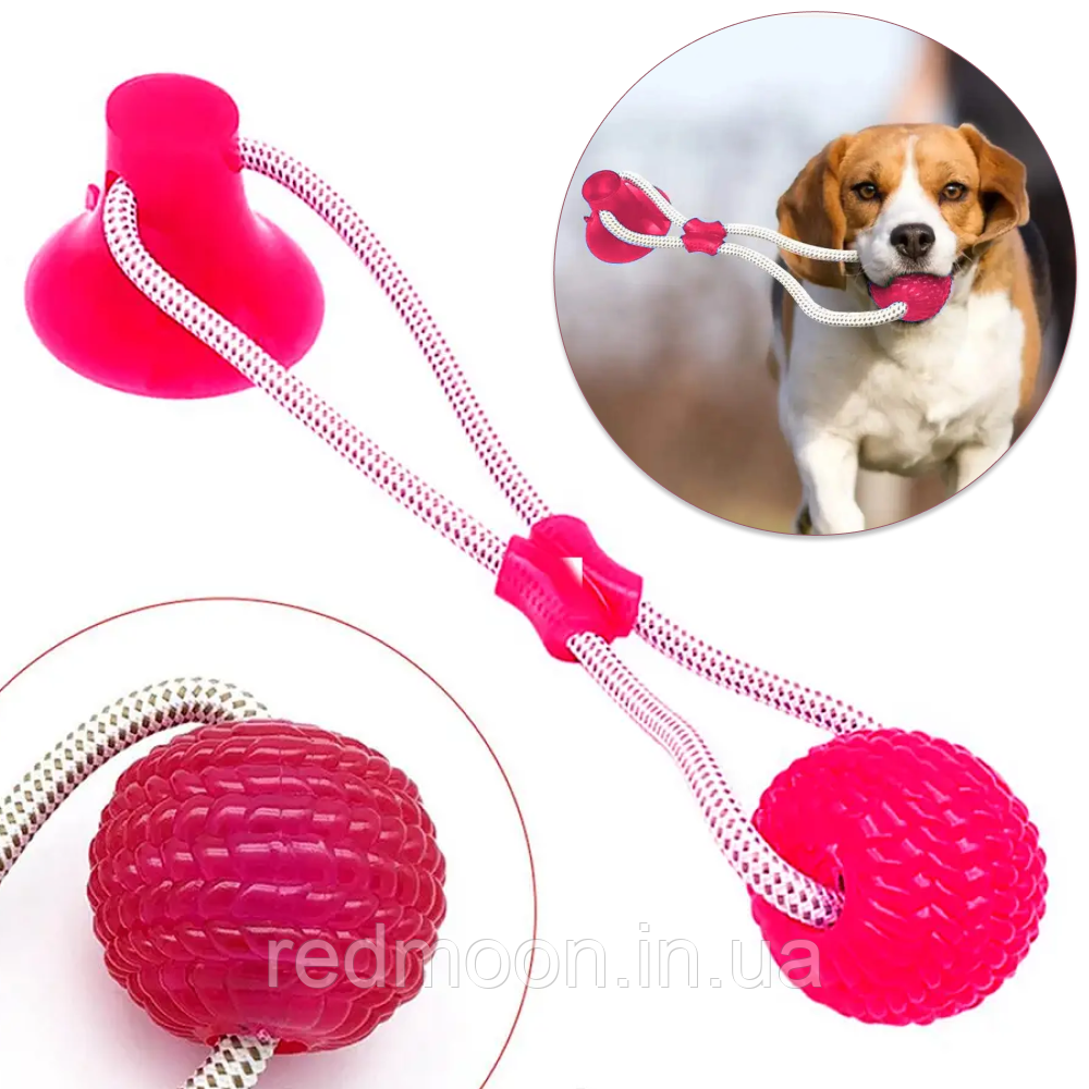 Іграшка для собак м'яч на мотузці з присоскою EL-1126, Рожева / Гумова жувальна іграшка / М'ячик для тварин
