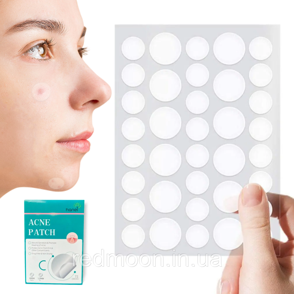 Патчі від прищів та акне 72шт Acne Patch / Прозорий пластир для лікування акне / Протизапальні наклейки