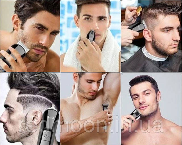 Багатофункціональна машинка для стрижки VGR V-012 для стрижки волосся включає не тільки машинку для стрижки волосся, але і бритву, а також тример для бороди, вусів, носа і вух.