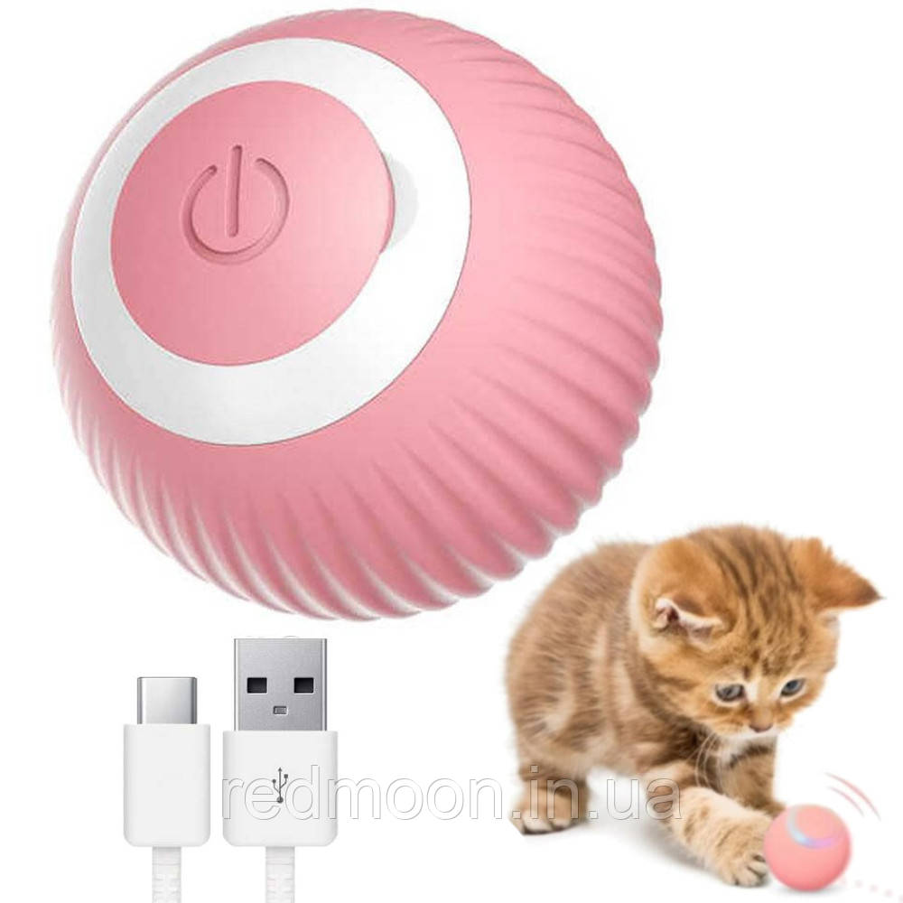 Інтерактивна іграшка для котів 4,3см PetGravity, від USB / Смарт м'ячик з підсвічуванням для домашніх тварин