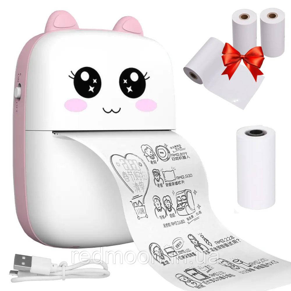 Міні принтер з Bluetooth + Подарунок 3 рулони термопаперу для міні принтера / Дитячий термопринтер для телефону