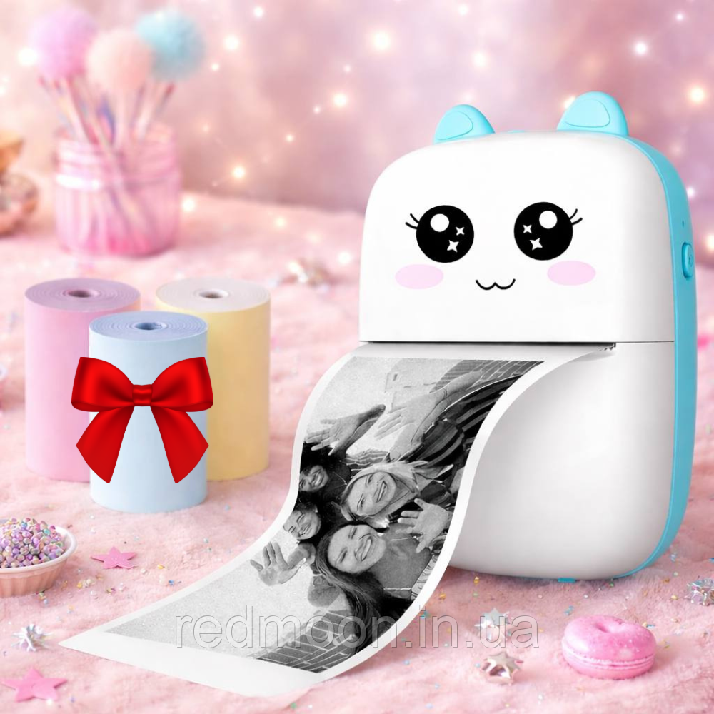 Дитячий міні принтер для термодруку + Подарунок Кольоровий термопапір 3шт / Принтер для телефону / Термопринтер