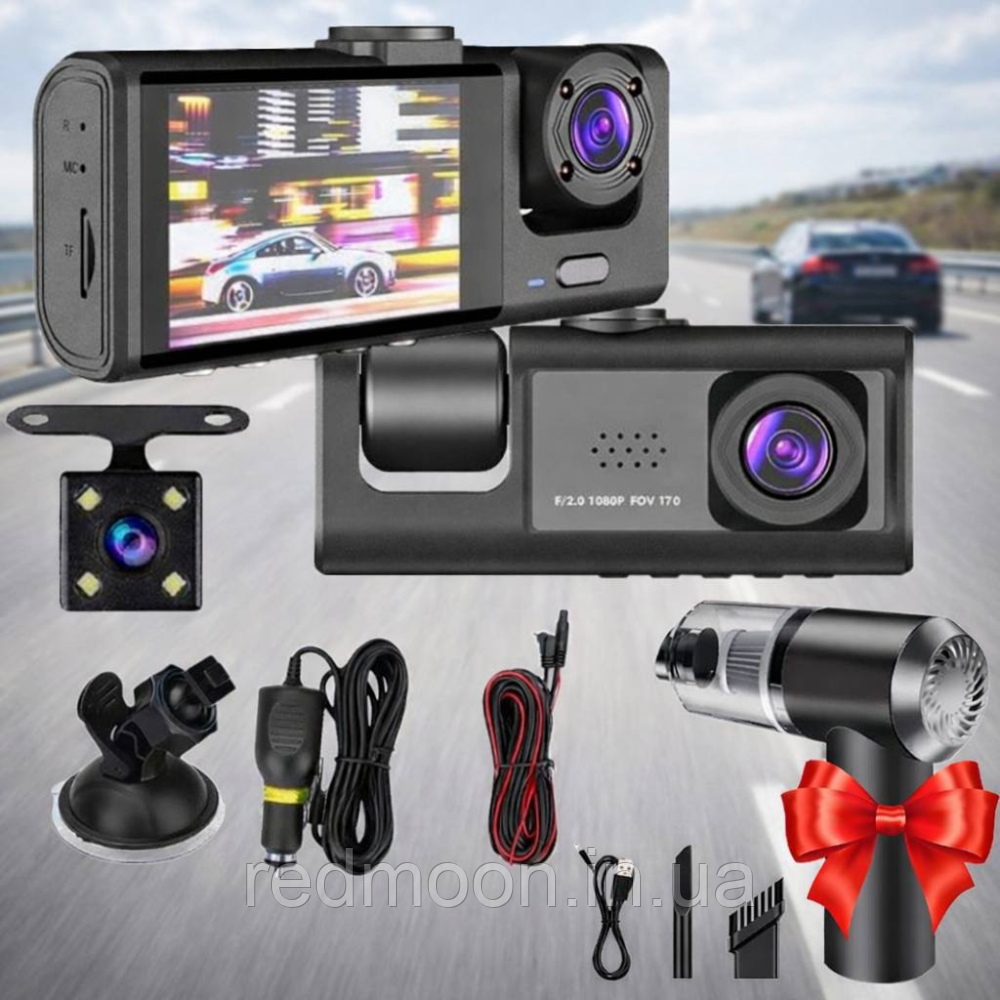 Відеореєстратор, 3 камери, 1080P + Автомобільний пилосос Vacuum cleaner / Реєстратор в машину / Автореєстрато